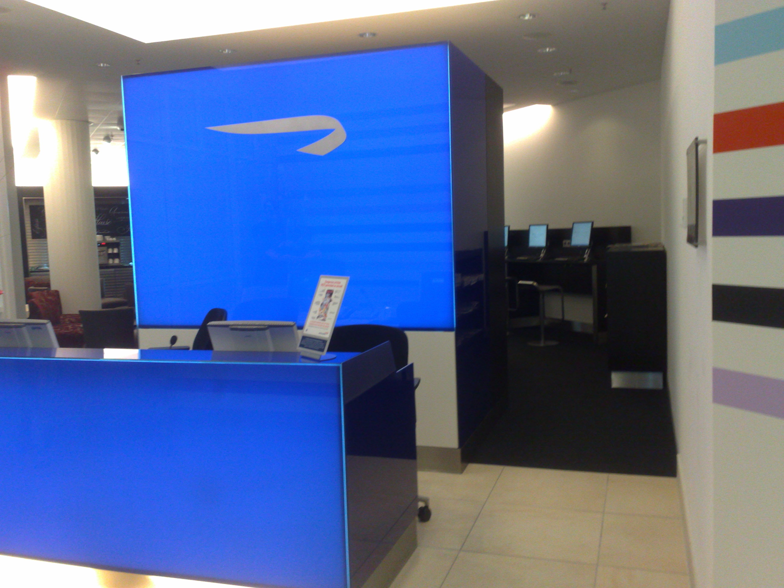 The entrance looks like they stole a prop from KLM. The blue bears an uncanny resemblence to the (in)famous KLM blue. I bet if you photoshop the picture of that entrance and of a KLM aircraft, the colours would have virtually an identical composition!