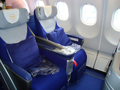While we found the Lufthansa economy seats too cramped, the business class seats were quite good. Like the LOT flight, the seat in the sleep position is almost lie flat, but at a slanted angle. We found it actually easier to sleep at a regular recline angle. The amenity kit is also quite nicely packed, and the blue bag is nicer looking than the United’s nylon bag.