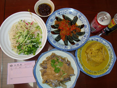 After a very tiring bike tour, it’s time to get re-energized with some good food, and we went to a restaurant near the hotel for some Peking noodle, sesame paste eggplant, preserved duck eggs and mustard cabbage. The food was good, only complaint is the soda can is only medium cold, not like the super ice cold one we need in this type of heat !