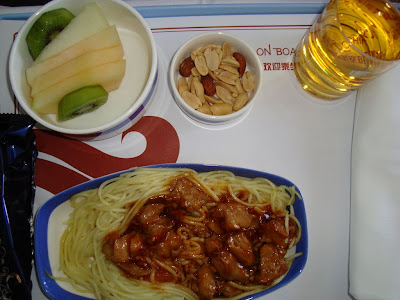 767A340, and this is very comfortable for the short hop to Shanghai. Lunch was chicken noodle and some fruits, and it’s actually quite good.