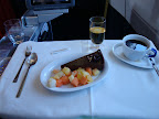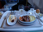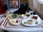 Then the dinner service began. The young male FA set up my table with glasses and cutlery, never tried that before. Guess the purser decided that due to the light load in business today. Great touch, wished they did that on all flights.