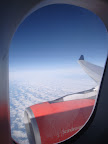 Soon the glasses were collected and we were taxiing towards the runway this gray rainy morning. Soon we were airborne and passed through the thick low clouds and got up in the nice blue and sunny morning sky over Scandinavia. That’s really some of the best part of flying. Leaving the rainy ground and soon see the blue sky and the sun.