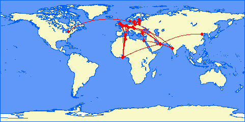 ACC LGW DXB DUS AMS BOM BHX FRA LFW GHA NYO ALG HEL RIX TMP YYZ PRG KUN RYG PEK GLA LPL GDN EDI BTS CAI IST