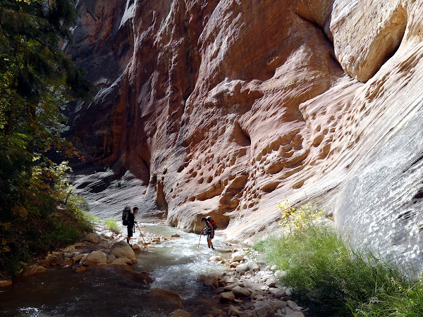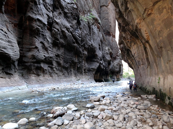 For the rest of the trip report about Zion National Park, I'll just do a quick description of the trail, and let the pictures do the talking. There are 3 ways to see the Zion Narrows, which is arguably the most famous of all the hikes in the park. Most people will do a quick day trip, starting at the Temple of Sinawava and hiking up about 3-4 miles to see the Wall Street section of the Narrows (the narrowest and probably most spectacular), then hiking back down the same way. This can be accomplished in a just a few hours. The 2nd method is for those who want to see the entire Zion Narrows. The top-down 16-mile trail is best done in 2 days, and there are backcountry permits available to reserve campsites along the river at around the half-way point. This is the method we chose to do. Be sure to reserve your permits online as early as possible, as you can do that up to 3 months in advance of your start date. Amazingly, for those who are extremely fit and capable, the 3rd way of seeing the Narrows is to do the entire 16-mile trail in one day. I would definitely not recommend this unless you have a lot of experience hiking and backpacking, as we realized once the hike started that it was a lot more strenuous than the map would have you believe!