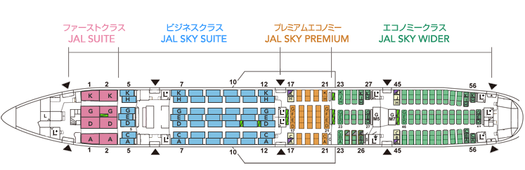 *[Update: JAL has updated the seat map. 8 of the seats at the back are not assignable on international flights because of narrower than advertised seat pitch]