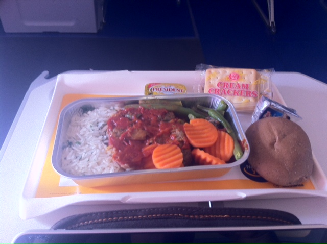 This is what is served on Brussels Airlines (SN) to Athens, normally a no-frills airline intra-EU:
