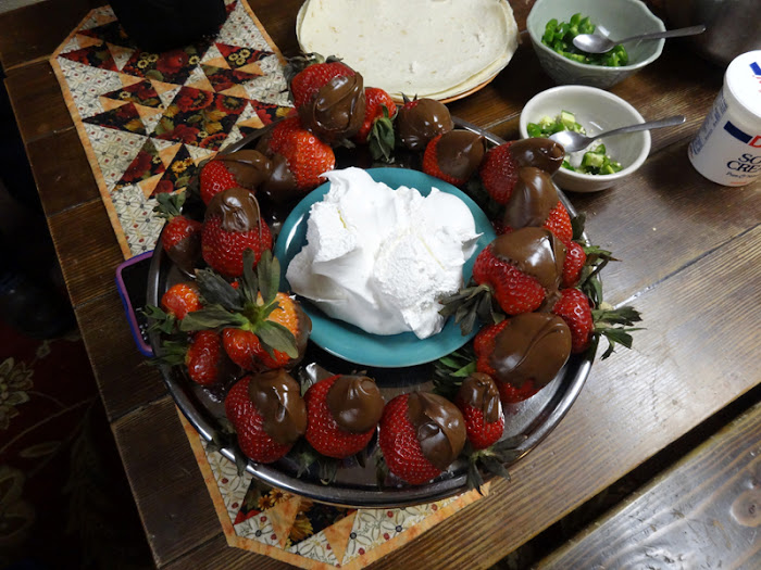 Billie and her family were wonderful hosts. On the second night, they even made two huge pots of chili, one with beef and the other with caribou and moose, along with plenty of condiments. Not only that, they brought out strawberries dipped in chocolate for dessert! Even though I'm sure this wasn't a regular occurrence, I still couldn't believe how generous they were.