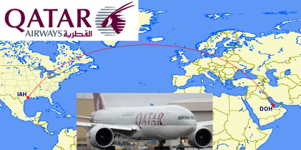 9. Doha-DOH <--> Houston-IAH is operated by Qatar Airways' Boeing 777-200LR. At