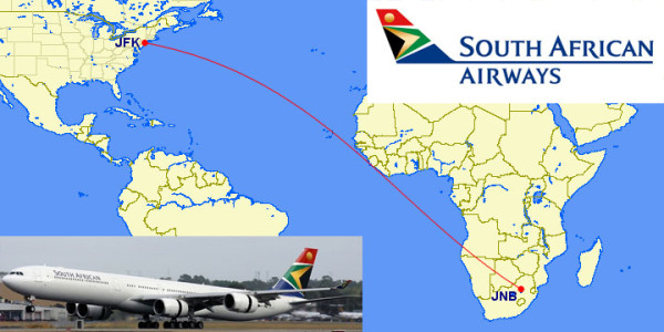 7,969 mile (12,825 km) flight takes 16 hr 05 min on a South African Airbus A340-600.
