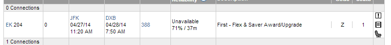 Z (first) & D (business) which is the what my all of my EK awards on AS miles have booked into in the past are showing nothing available on EF. Which is wrong? Or is KVS searching based on EK availability to EK's own members? I'm not saying AS is right becasue i know its always wrong but EF and KVS data does not match each other.