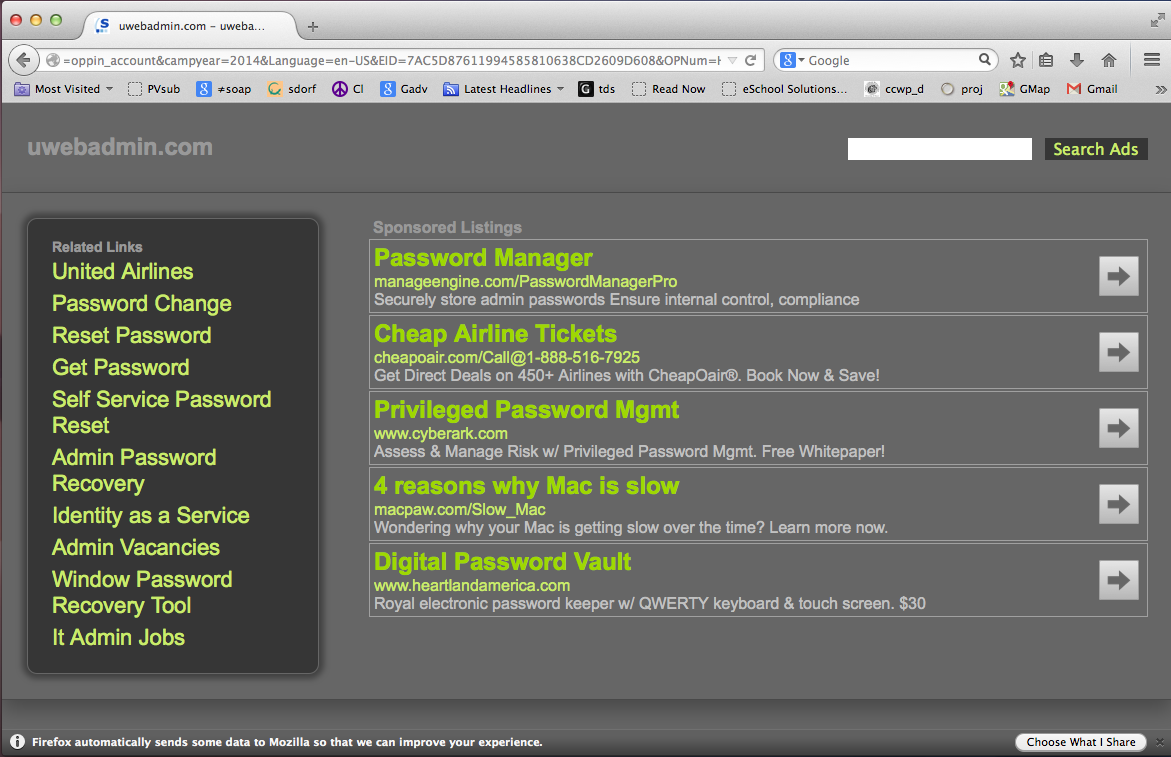 I've been trying to help my wife book a reward trip, and the person on the phone asked her for a password or pin which she never created. When I insisted we speak to a supervisor, she finally agreed to send a link to the email for the account to reset the pin. The link she sent would not open at all in Chrome, and in Firefox it lead to the attached webpage which seems like a total scam site! I'm mystified...