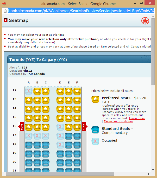 Booking page shows NOT a preferred seat
