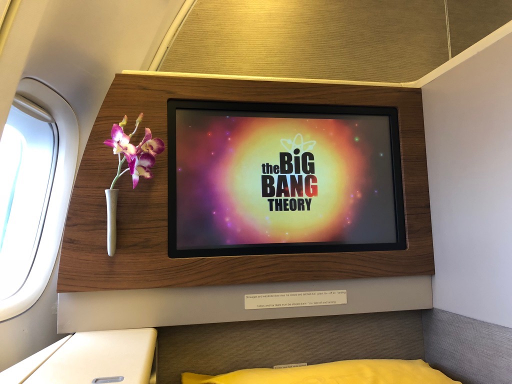 So there was no delay in boarding and going straight to our seats. Of the nine seats in this cabin, the four in rows 1 and 2 were occupied and the five in back were empty. I know it’s a roll of the dice whether you get the nice product or the old one on Thai’s 747s, but this, at least, was the nice one. It’s probably a nicer seat than on the A380.