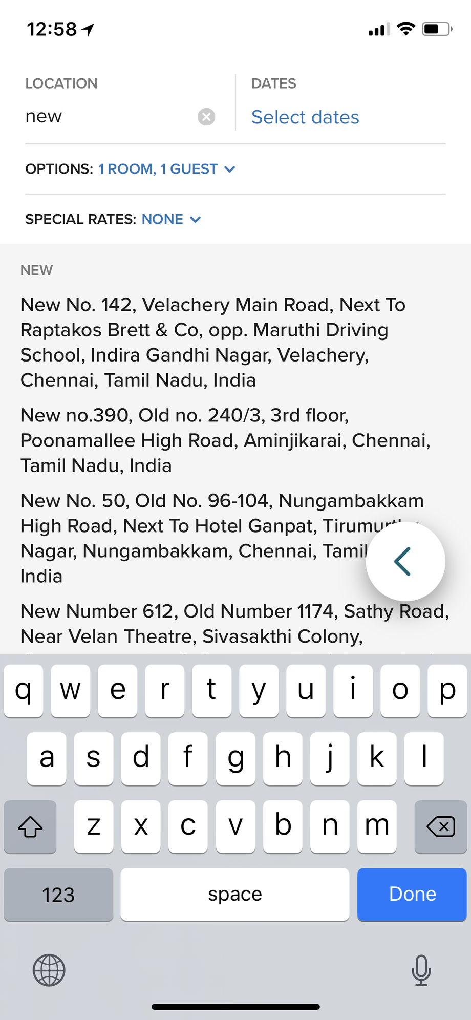 Anyone else have this problem in the new combined marriott app? When I put in a few letters, instead of filling in a nearby city, or a city where I've stayed in the past, the Marriott app is trying to find me hotels near random addresses in India. For example, if I type in New, instead of New York or New Orleans (both locations where I have hundreds of nights worth of past stays), I get this: