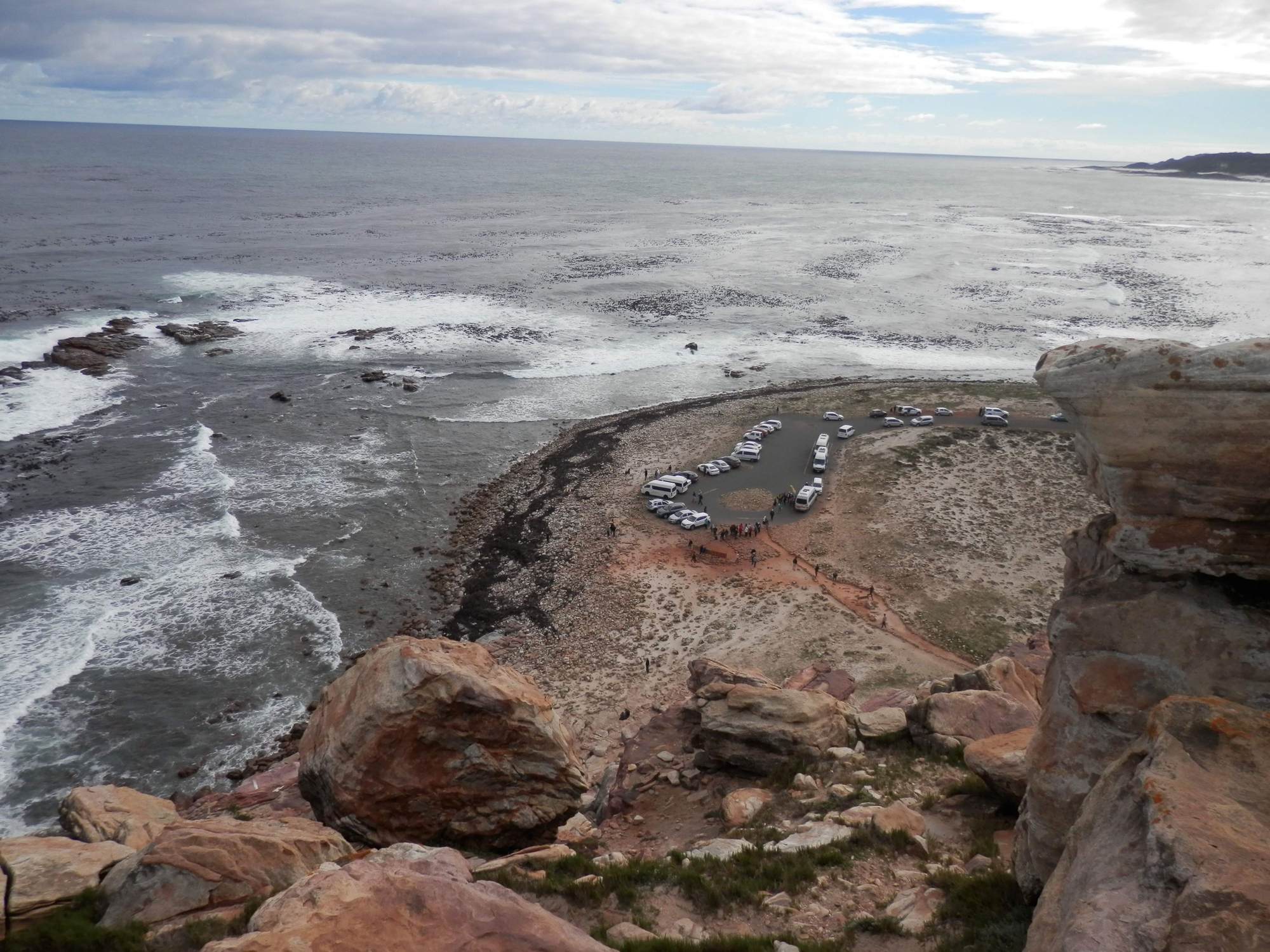 By the time we had gotten proof of us having touched the South-western most point of Africa and spent a few minutes looking around, look how much the queue has grown. We were glad we came exactly when we did, else we would've had to queue up as well! Check out the view of folks climbing up and those on the top