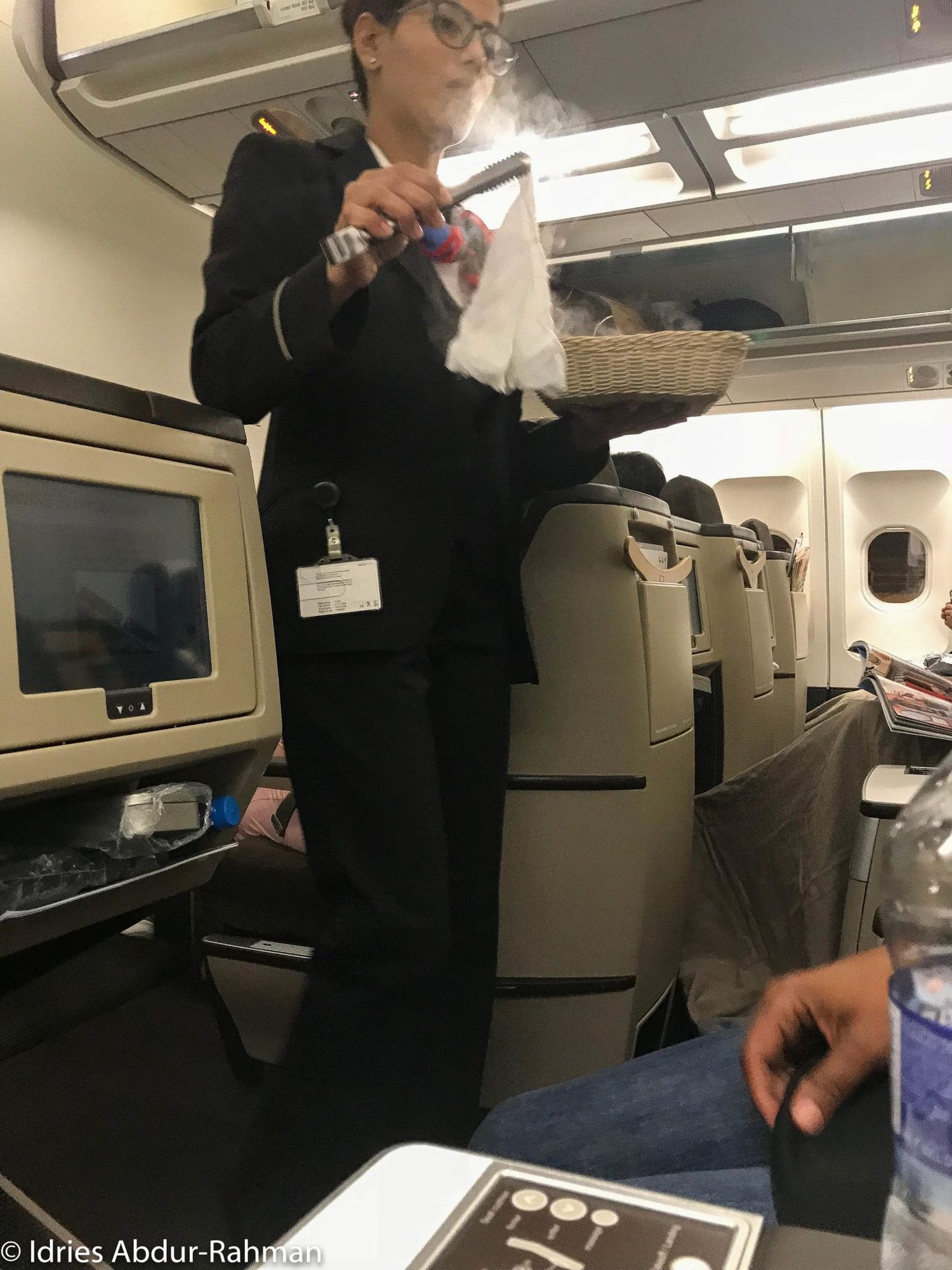 After pre-departure beverages, the crew distributed hot towels. I bet you’re surprised to hear that these were hot towels huh?