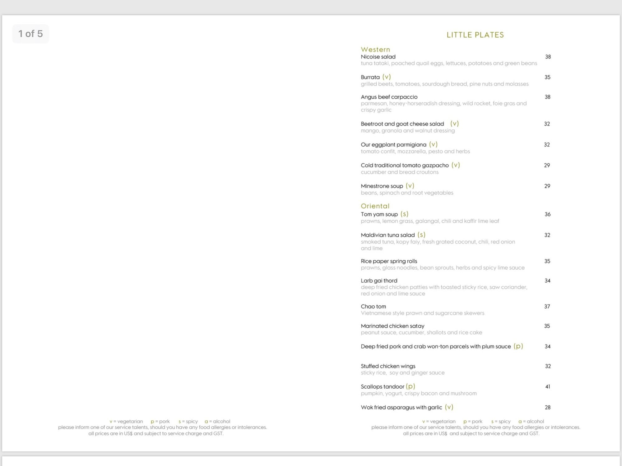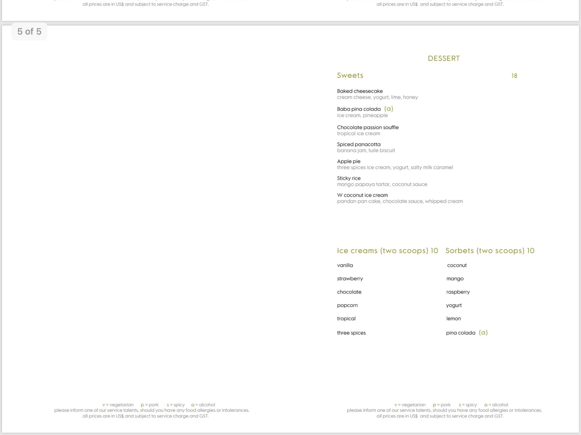 And the food prices upon further review are also less conclusive. The St Regis does seem to have lower food prices in many categories, though it's hard to know how comparable anything is. The W sent me the menu for Kitchen restaurant with prices, with the pages attached below. There are also links to some St. Regis menus on that thread. Overall prices appear to be pretty similar between Kitchen at the W and Orientale at the St Regis, but I don't know if those are necessarily comparable quality levels and portion sizes.