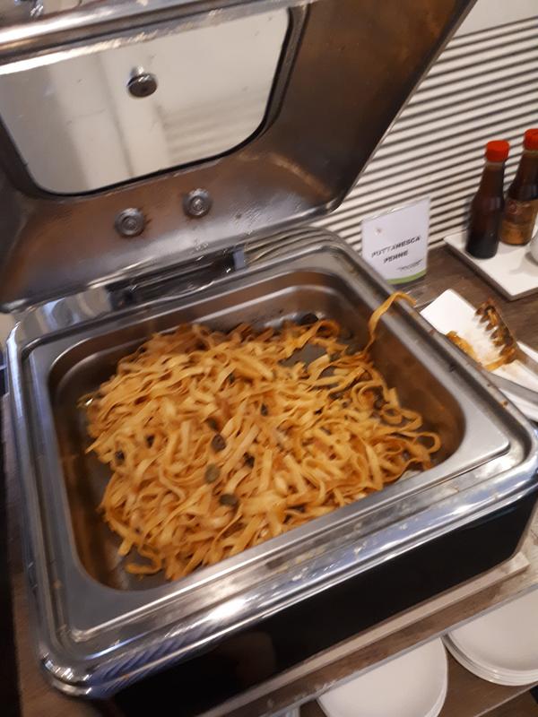 The only hot option available was some pasta – which seemed to be very popular among many of the lounge punters, but which I did not find looking particularly appetising.. Somehow the sign labeled it as “penne” - which it was decidedly not (more a rather bad fettuccine).