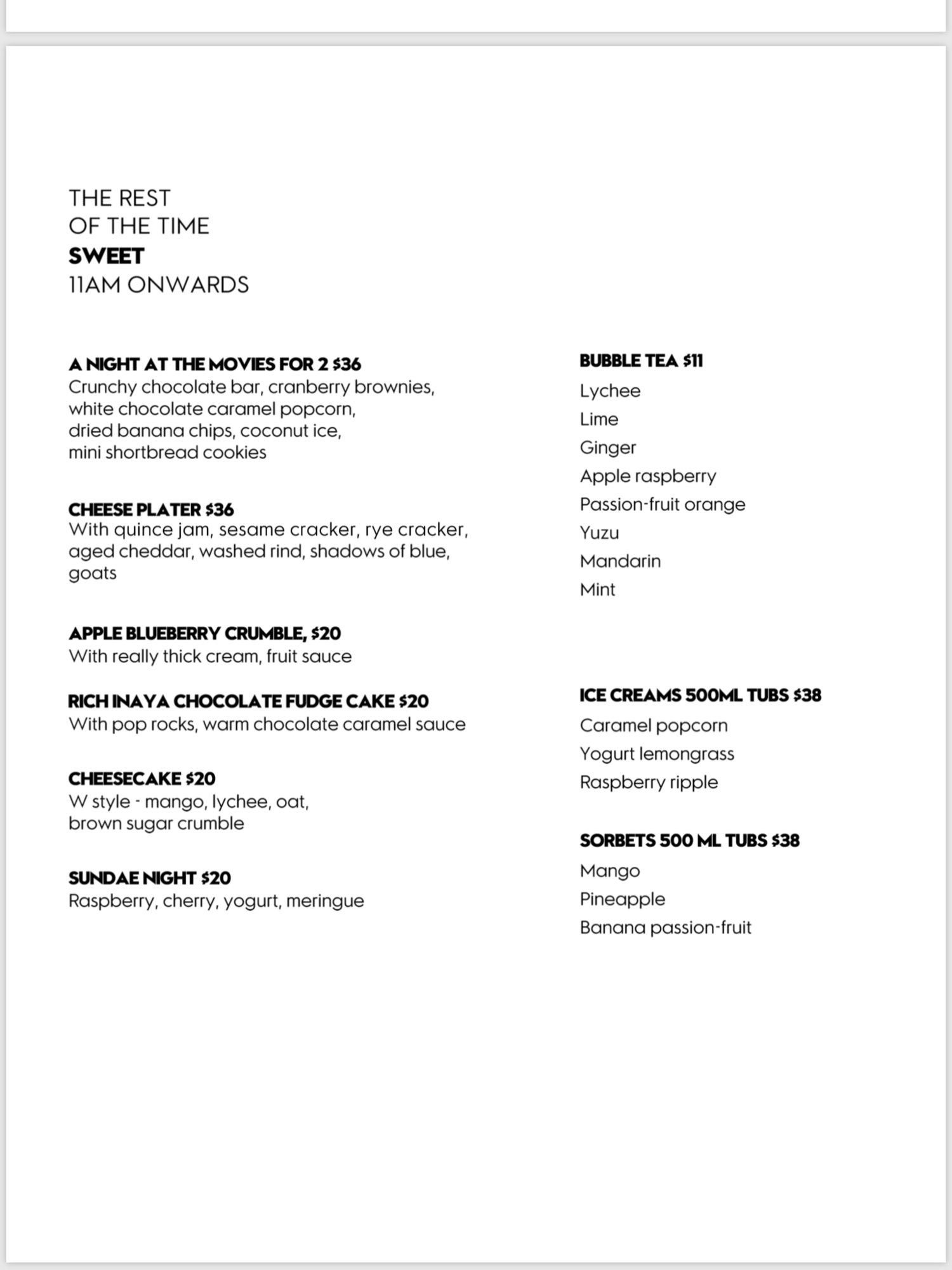 First, in-room dining menu (which appears "reasonable" compared to elsewhere in the resort in certain categories, but then very unreasonable in other categories, like the ice cream tubs):