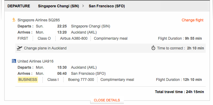 In this case, I found it by searching SIN-SFO and got SQ F Suites- UA J, whereas my outbound married segments for SFO-SIN showed up as UA J-NZ J, also via AKL.
