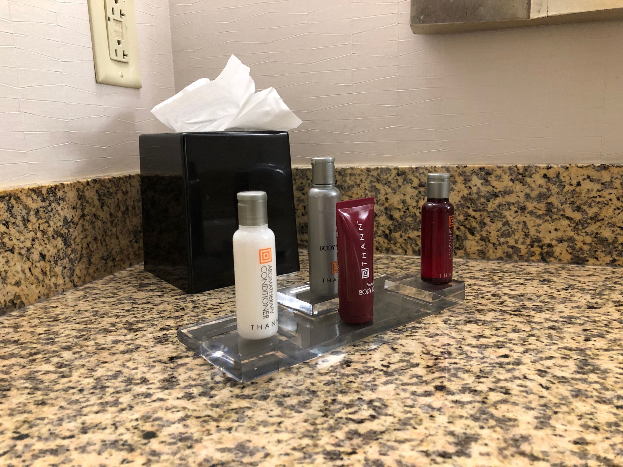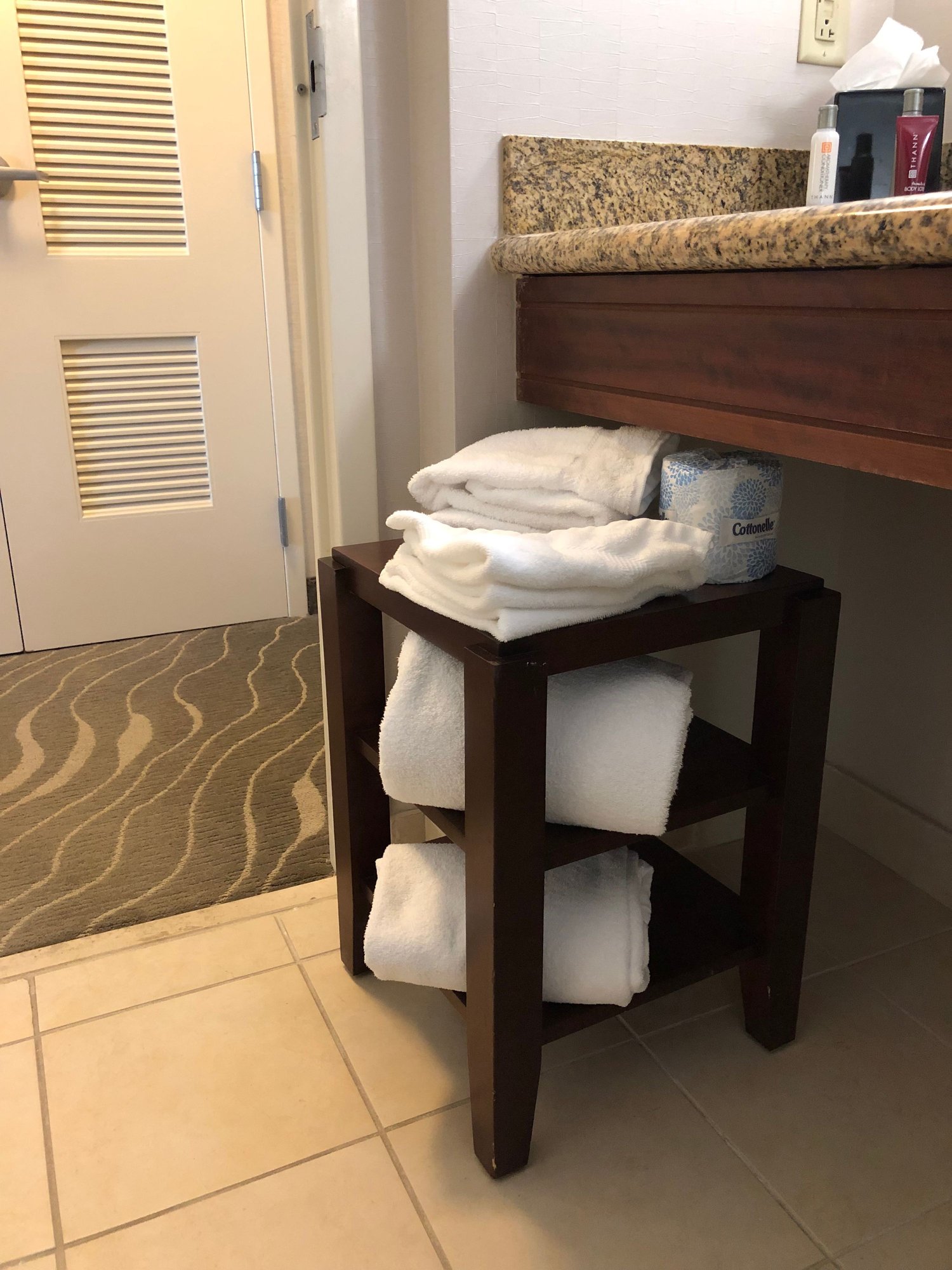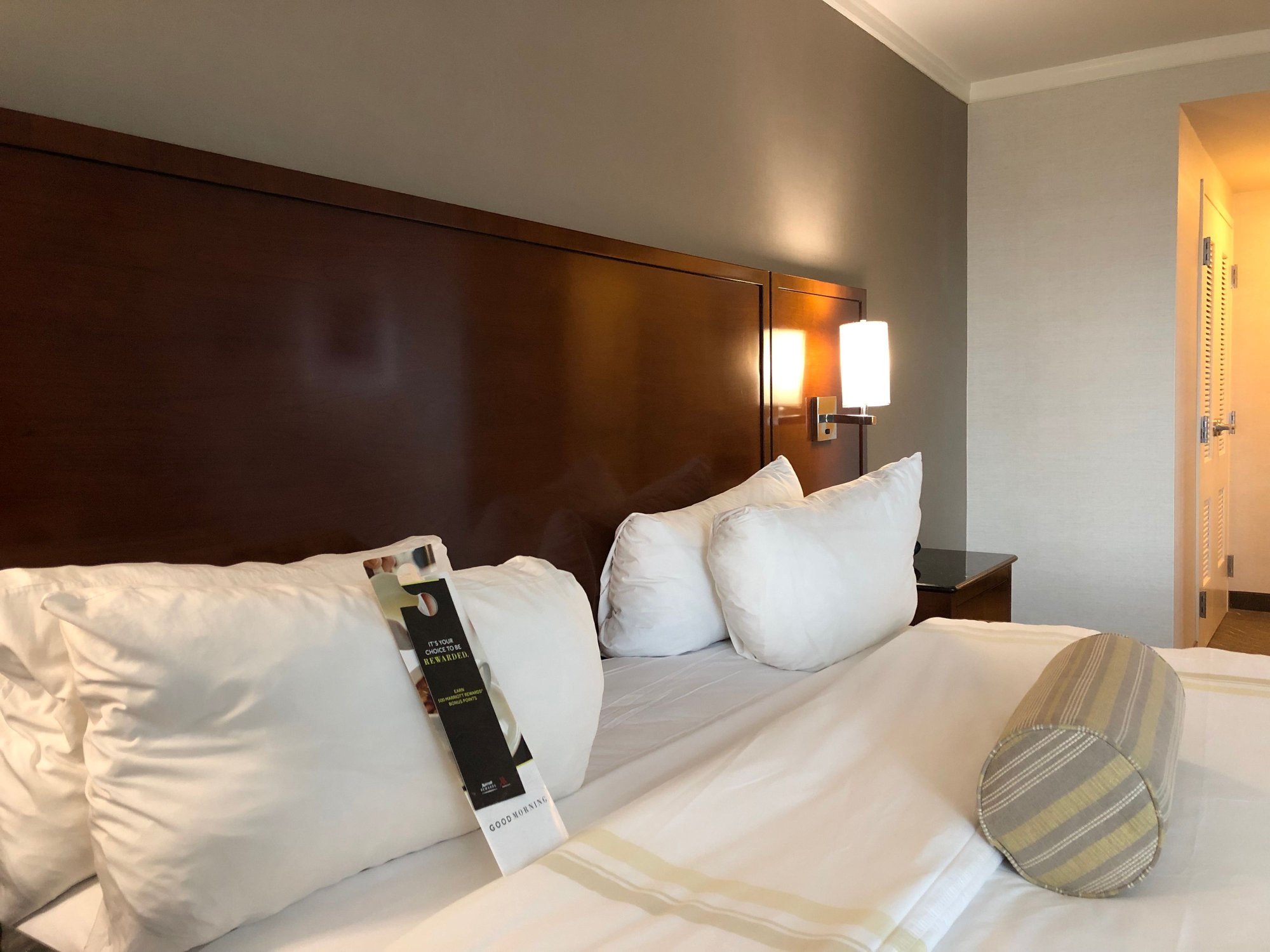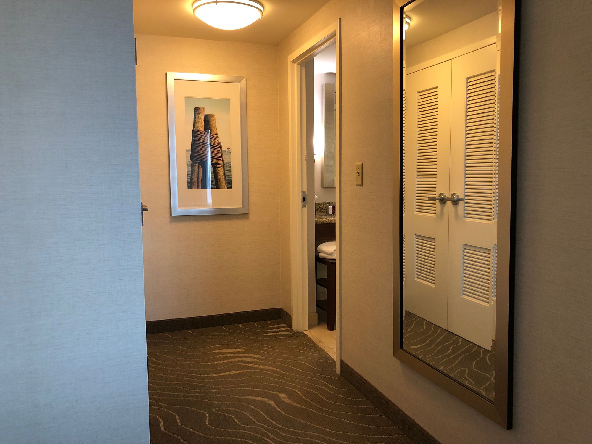 At the front desk I was recognized as an ambassador and only had to show a photo ID. All elites get a brown paper bag with two bottles of water. I was offered the usual arrival choice of the $10 voucher or 1,000 points. No bellman to assist with luggage nor a valet parking attendant.