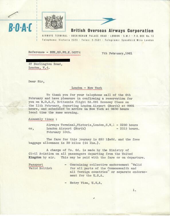 I have another non BA ( BOAC) from 1955 which was likewise a letter, but this related to a charter. I have a 1966 one to Mexico ( non BA - Mexico Grand Prix with Jim Clark and Colin Chapman who were friends as father was a Lotus dealer ) which is also a letter, so I assume tickets per se were introduced later.