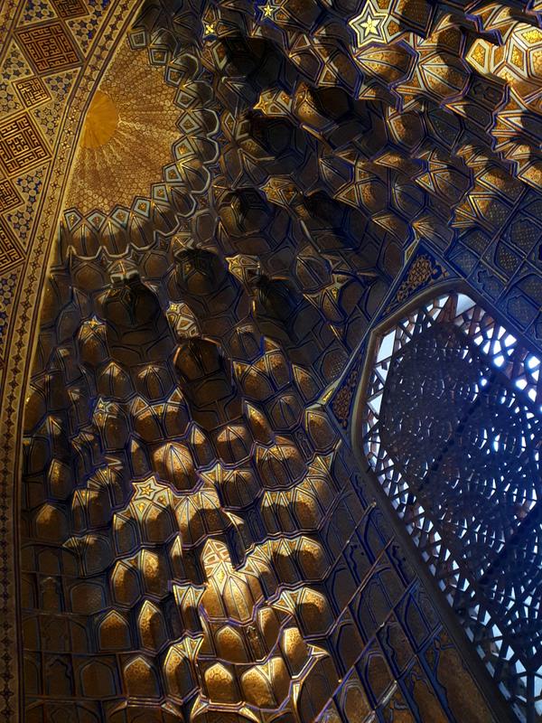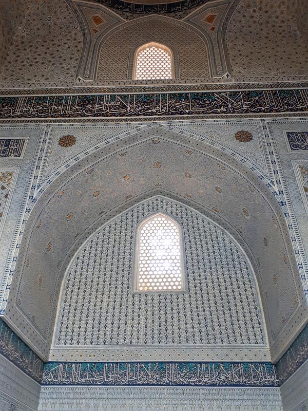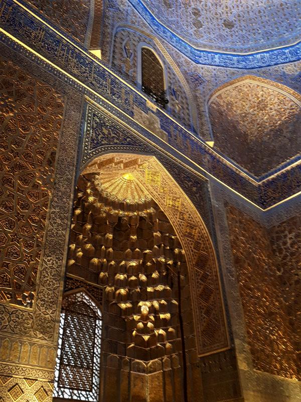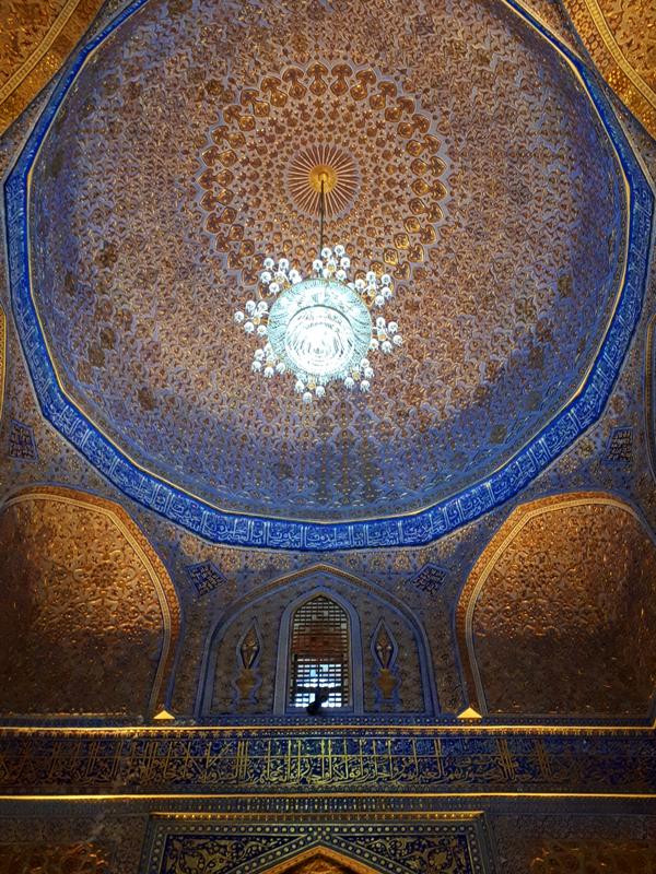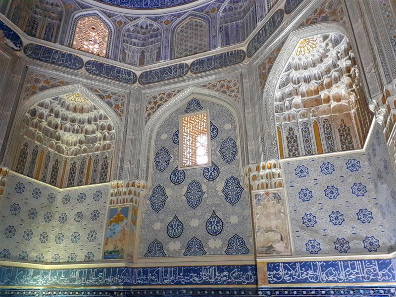 My second day in Samarkand started at the Guri Amir Mausoleum. The great conqueror Amir Timur, to whom Samarkand owes its great riches, is buried here. The story has it that Timur actually wished to be buried in the city of Shakhrisabz where he was born – but when he unexpectedly died in a harsh winter from pneumonia he could not be taken over the mountain pass there and had to be buried in Samarkand.