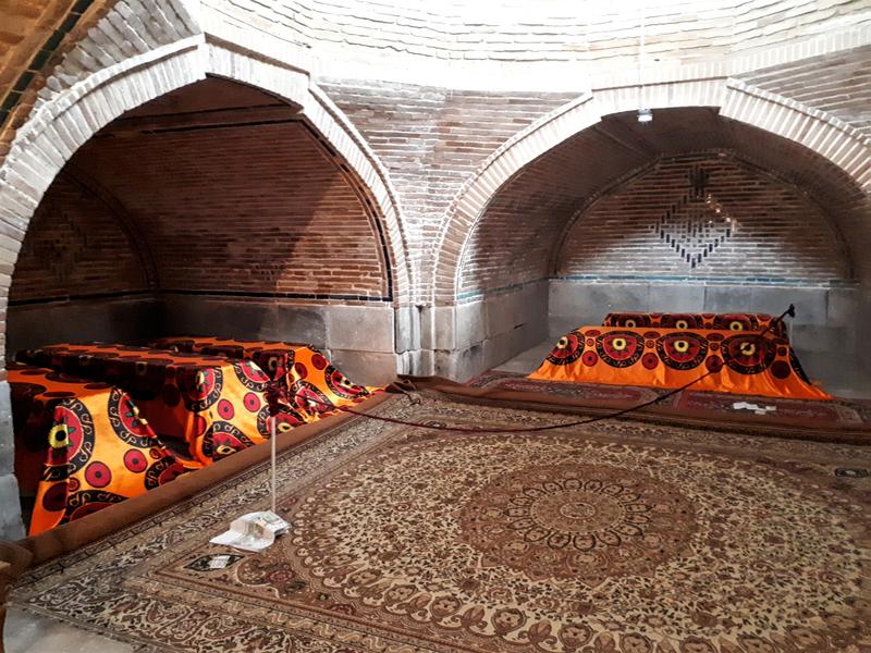 Directly opposite the mosque on Tashkent Street is the mausoleum in which Bibi Khanym is buried, as well as some other important women of the court.