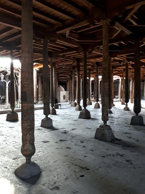 After the detour on the city walls I headed back down again towards the centre of Khiva. Another important sight is the rather unusual Juma Mosque, which is famous for its 218 wooden columns supporting the roof. Some of the beautifully decorated wooden columns date from the 10th Century.
