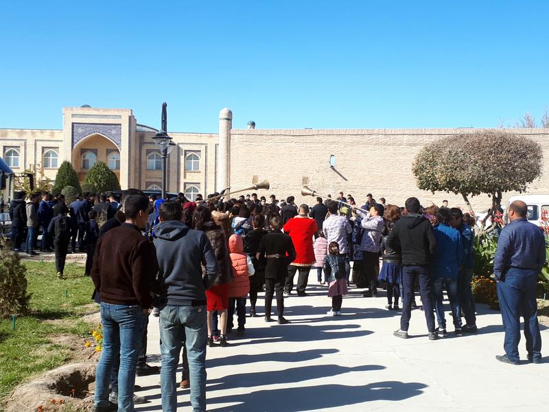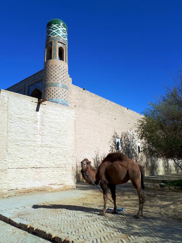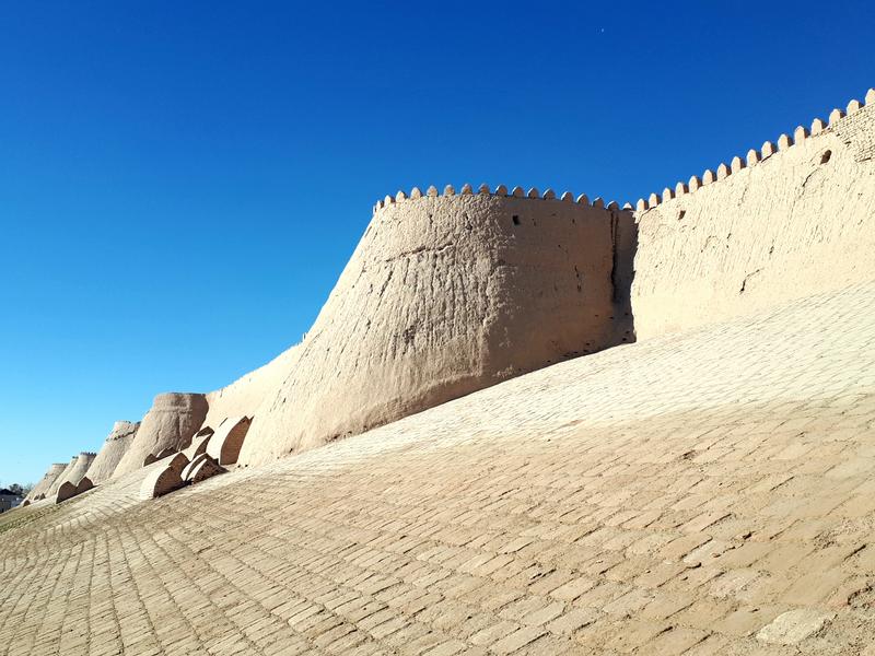 Khiva indeed feels special and completely different than both Bukhara and Samarkand. This is due to its location in the Kyzylkum Desert. When standing in front of the clay mud walls of the oasis city, once the centre of a feared slave-trading Khanate, you just feel that back in the days this was not the most hospitable of surroundings for foreign travellers. Interestingly, there was a wedding procession going on in front of the gate with some men playing on their karnay, a long trumpet making a very distinct sound. With the oriental music as backdrop I had no problems at all imagining I was indeed stepping back in time.