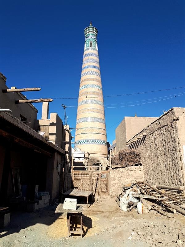 The Islom-Huja minaret towers above all buildings in this part of town. The more south you go, the more local life you will encounter as many of the low-key houses here are inhabited by townsfolk since centuries.