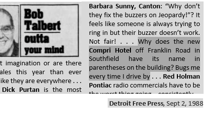 According to the above source, the Southfield hotel became a HGI in July 1991. Additional evidence for this can be found in archives of The Detroit Jewish News (made available online through the University of Michigan). Apparently a weekly advertisement ran in the newspaper. In editions until July 26, it would be called Compri.