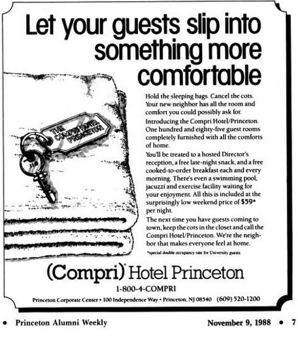 Sometimes you've got everything but the right name." "People just feel more comfortable with Judy Garland than with Frances Gumm. Even though there's really no difference." (Different moviestars were used as well). "And since our business is making people comfortable, we at Compri Hotels have also decide to change our name. To