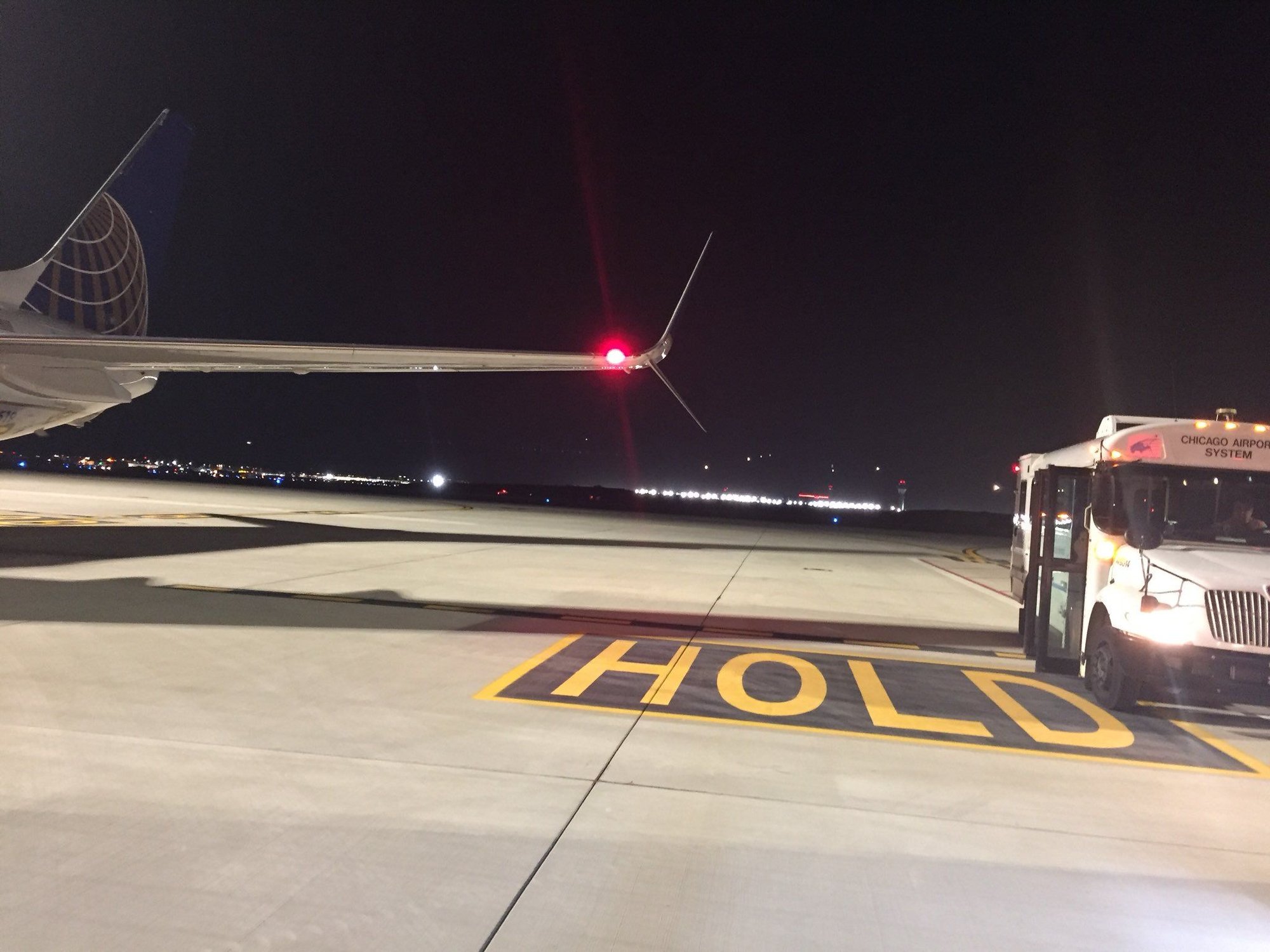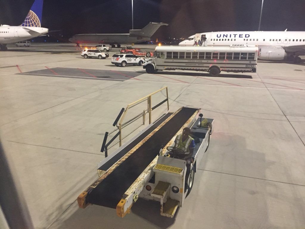UA/ORD did a decent job of getting us off the plane, despite a lack of equipment (air stairs and buses were in short supply—apparently the Bluth Company stairs were not used—we got on one of the big airport transport buses with low floors and many doors, but others appeared to be going on glorified school buses). No worse than last week at FRA, where the remote stands are planned. Not an experience you have every day, especially in the US! Buses delivered us to a location below B1, which means we actually may have gotten out of the airport faster than if we'd parked at the far end of C (of course, I wasn't making a connection). Wish I'd taken a few more pictures, but here are some.