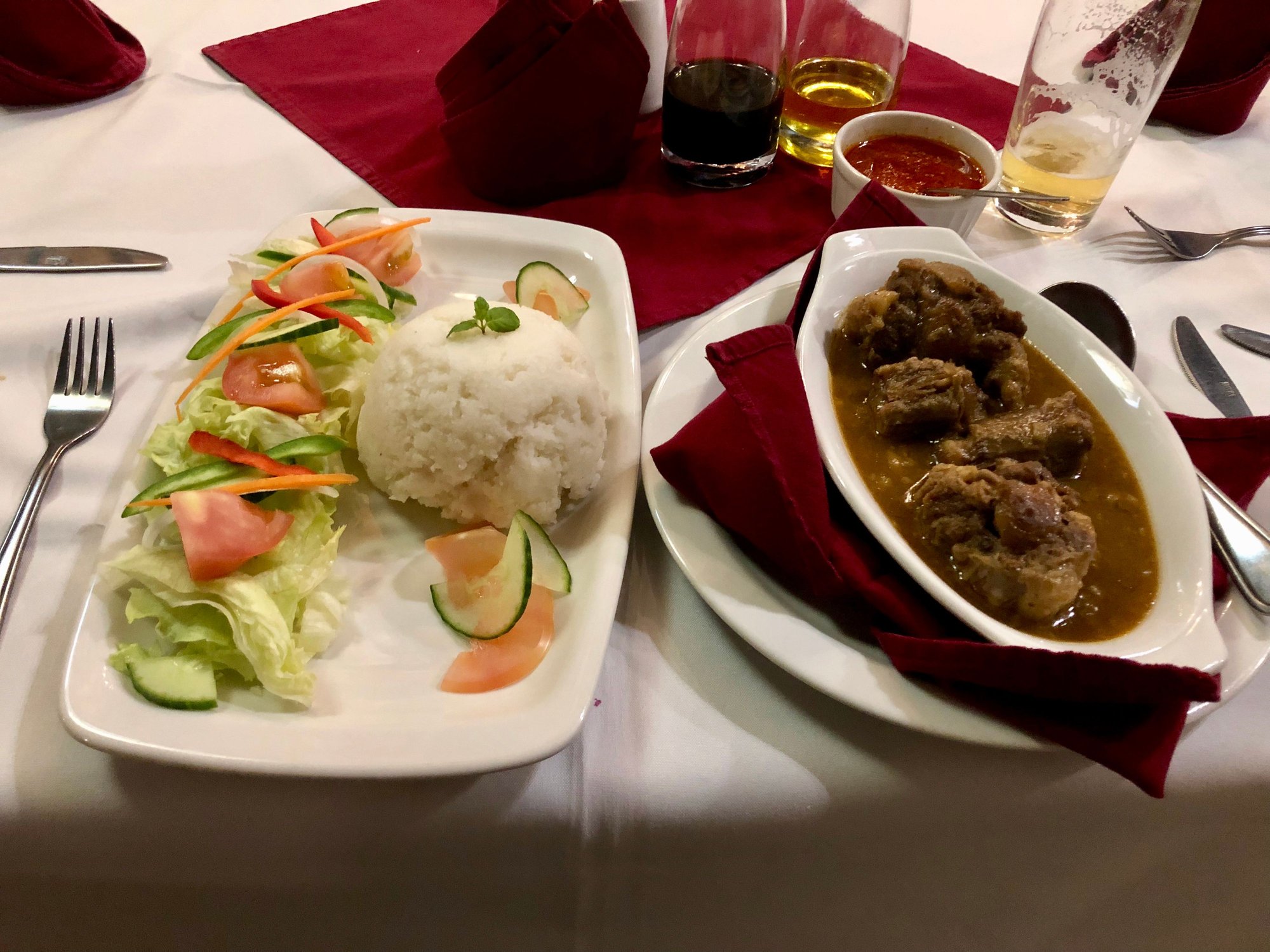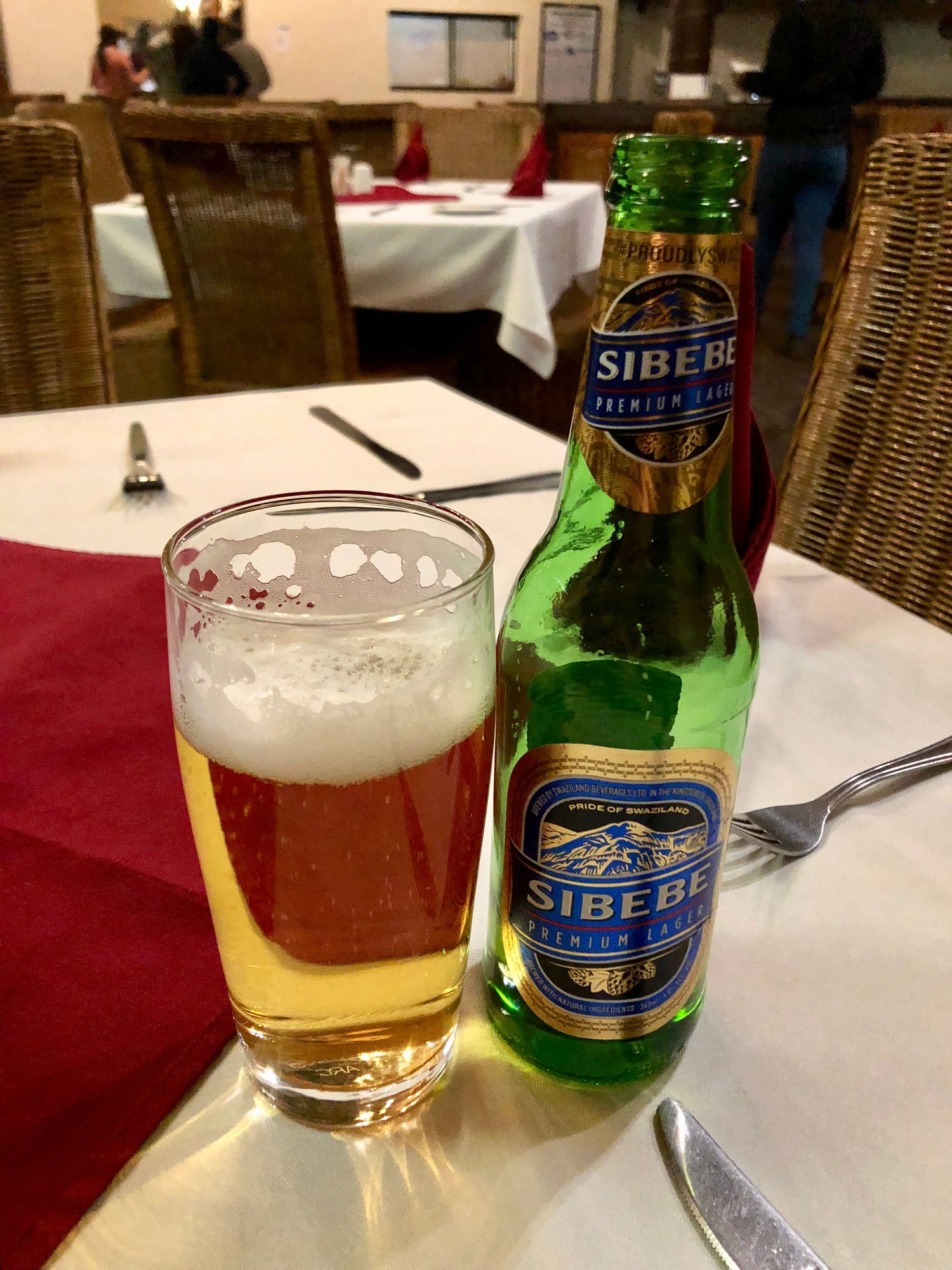 For dinner I was very well looked after as the only patron in the restaurant. I started with a Sibebe beer, very nice, and followed with a local oxtail stew with lipalishi (pap)
