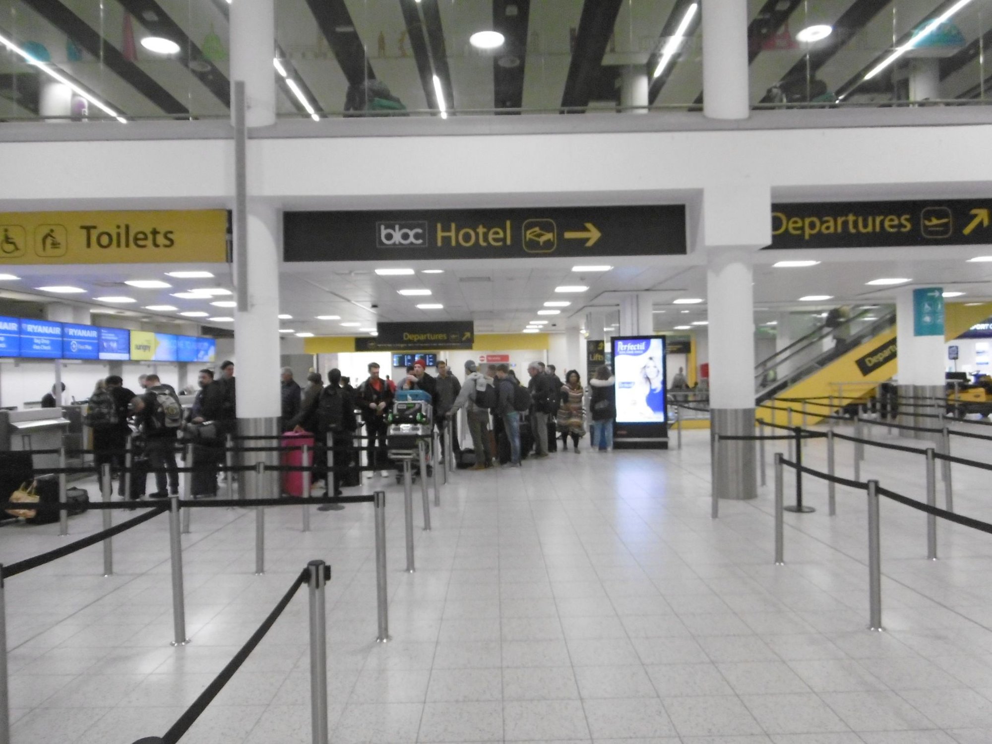 ... at the back end of Departure Zones D/E ... beyond those Ryanair check-in desks.