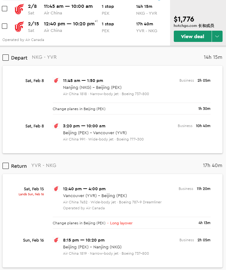 CA/AC: NKG to YVR from $1780!