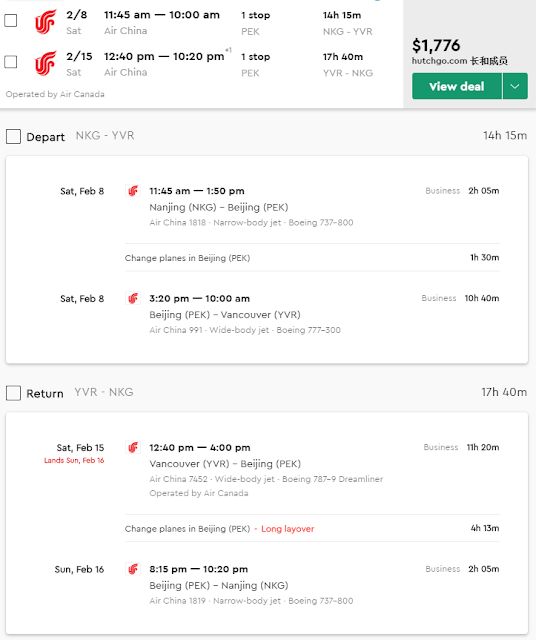 Air China is having a sale from Nanjing to Vancouver via Beijing. This fare books into R class.[font]You will earn 14700 miles or 125% of flown distance in most Star Alliance programs except Air China where you would obtain 200% or 23520 miles. United only gives 100% or 11760 miles. You can also fly on an Air Canada codeshare.[/font]