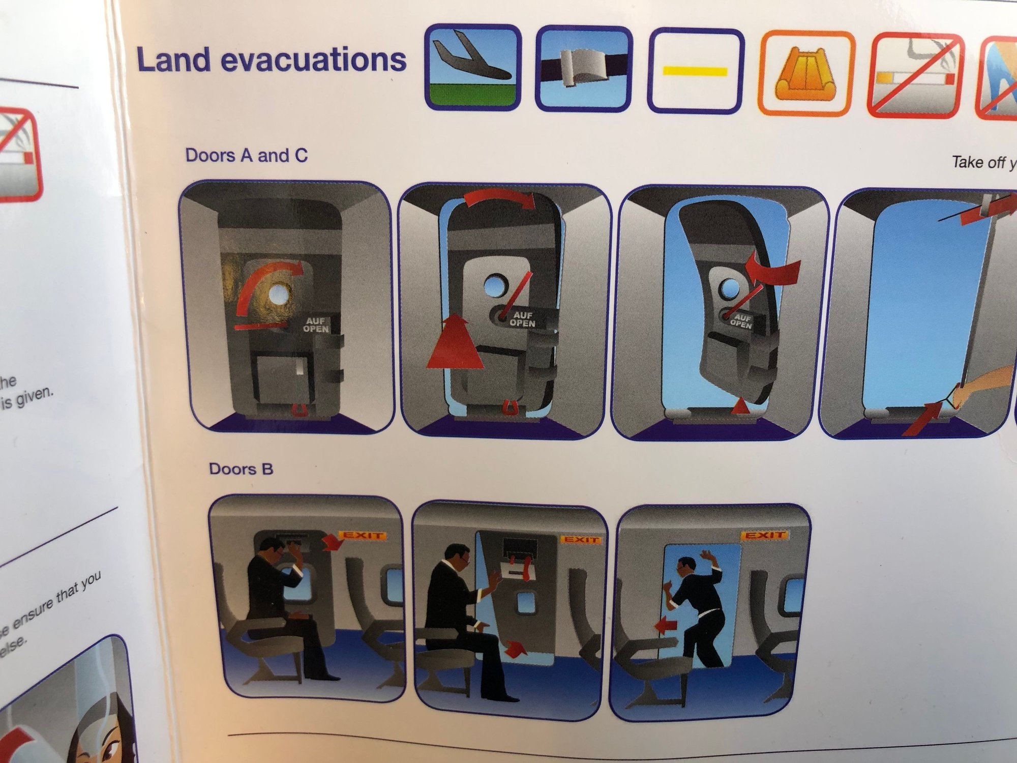 "If unable to evacuate through the overwing exits, roll up sleeves and strike a pose"