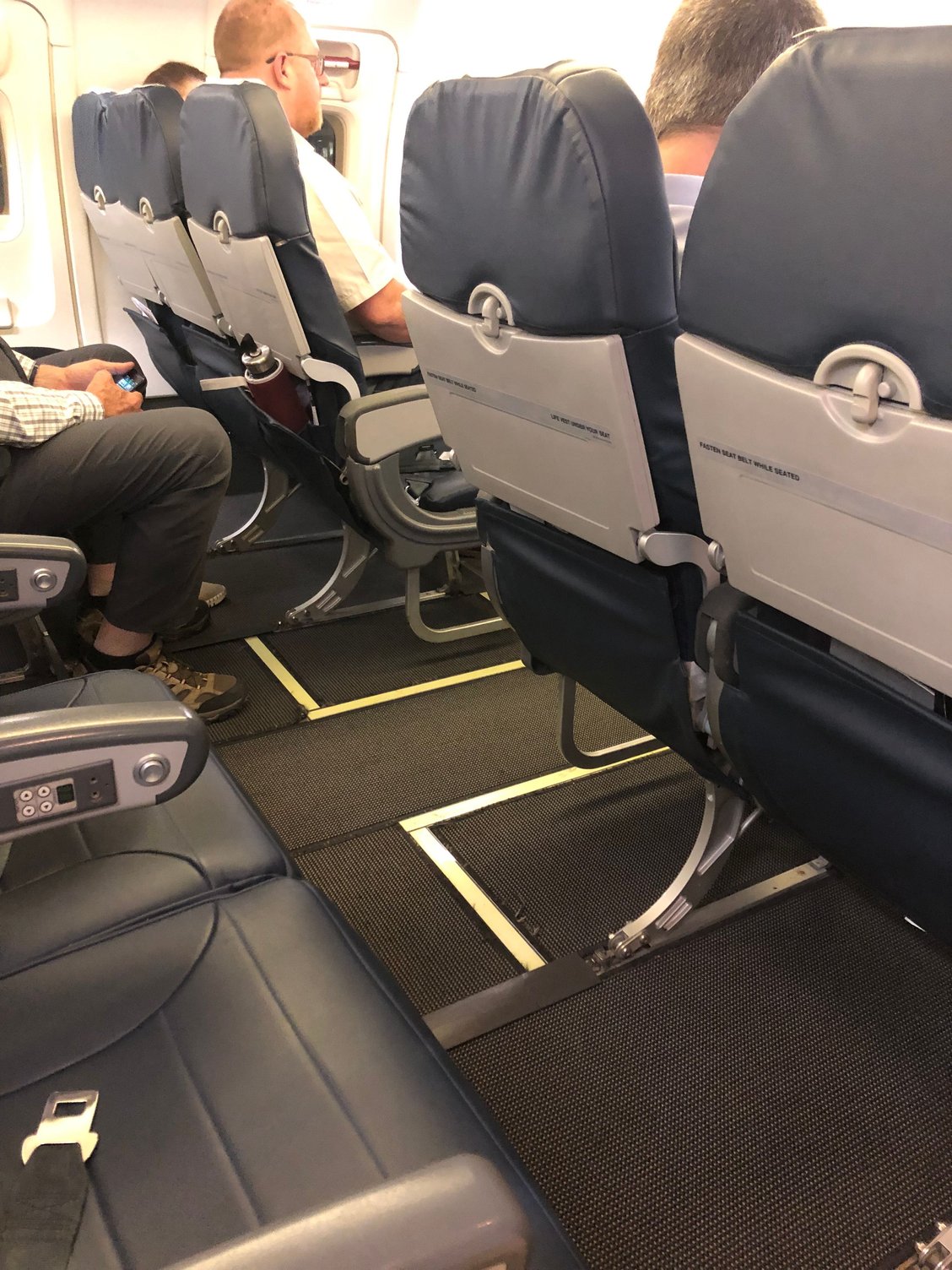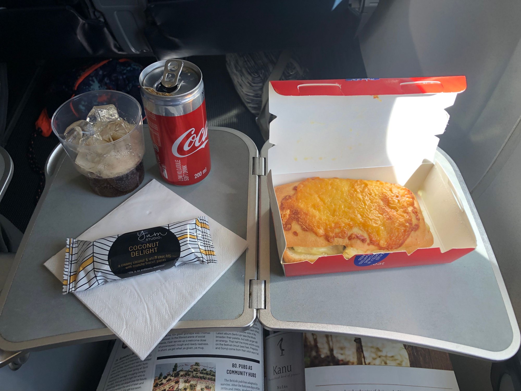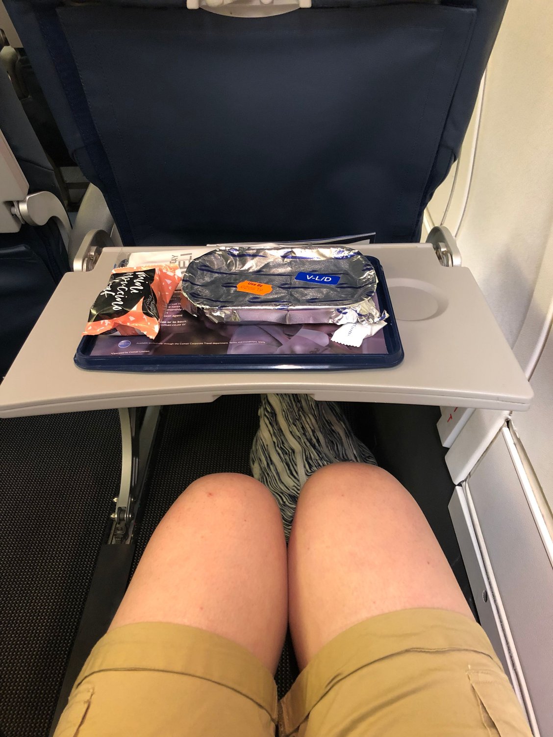 As an aside, the tray table appeared to be broken or possibly suffered a design flaw and would not extend very far, so I ate on the edge of the seat. I could have tried out any of the other seats in the row but was not sufficiently bothered about it