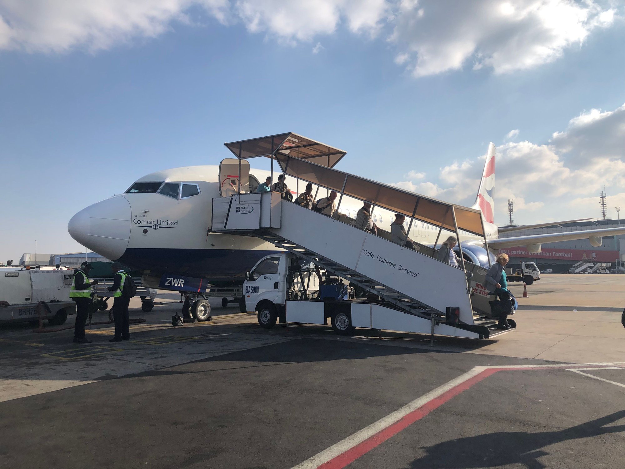 Evidently the sales desk for comair also handled other airlines. There was an Austrian family who had (I think) missed their flight or been wrongly ticketed or some such and essentially appeared to be needing to pay a walk up price to get somewhere on (I believe) Ethiopian airlines. The sales desk were happy to tell me my ticket could be changed for only a change fee and that seats were available in just about all buckets, however as the change fee was in ZAR they suggested it might be better to sort in Johannesburg as they only had capacity to collect payment in USD