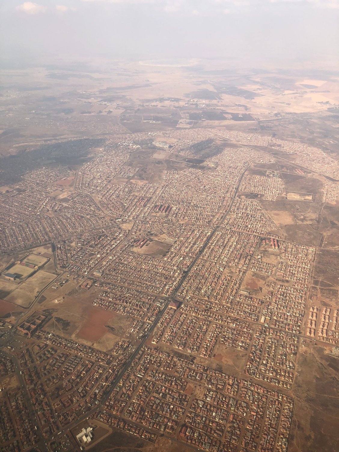 Closer to JNB, some kind of township (possibly Soweto), and then what looks like a CBD of some kind