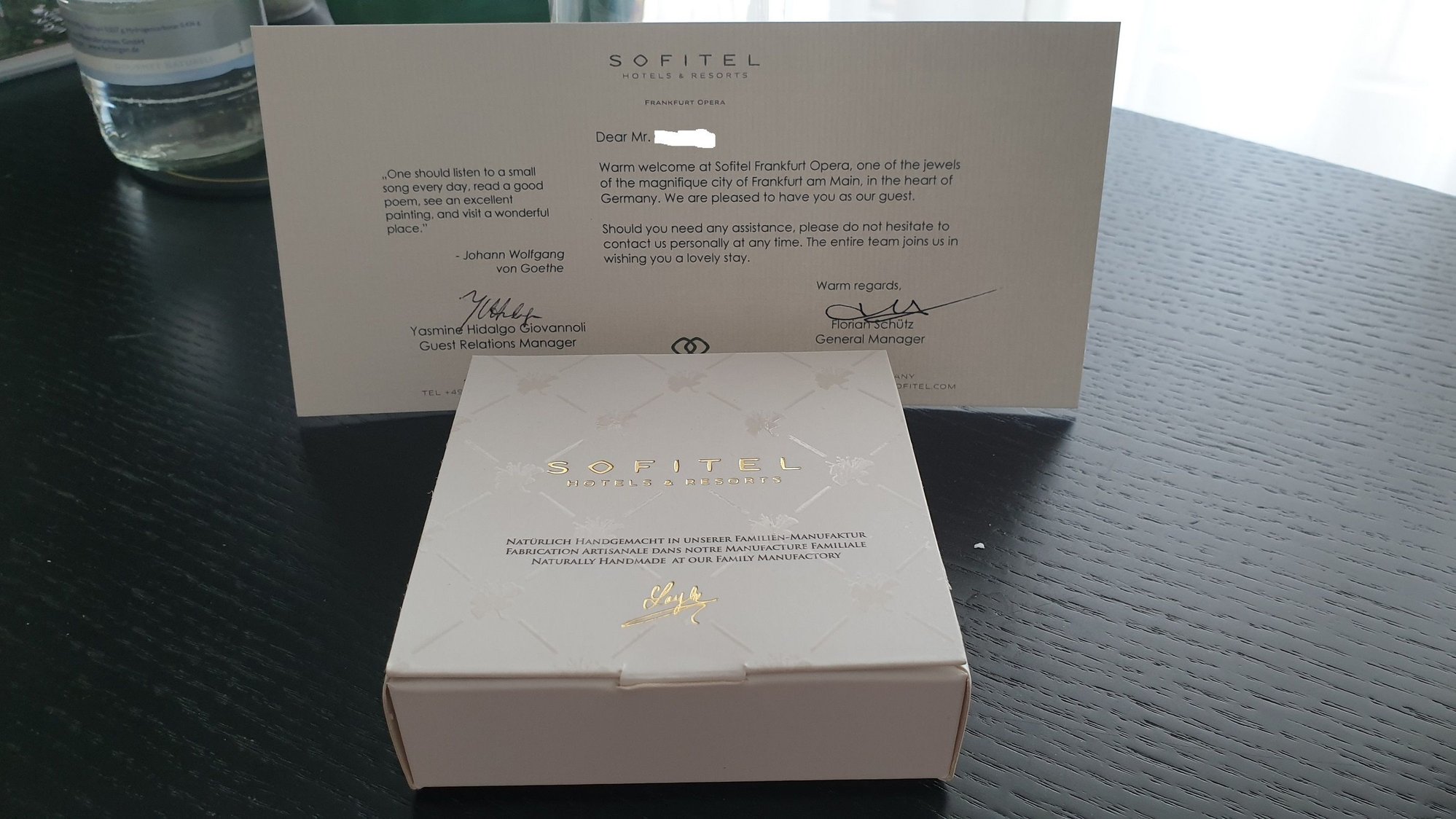 The welcome amenity arrived in the afternoon and it was a nice box with handmade sweets from Tunisia. A lovely and elegant touch that I expect from a Sofitel.