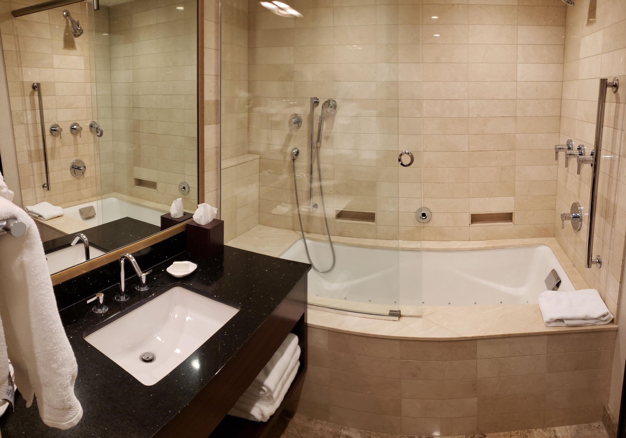 I was upgraded from a king room to a Tower luxury suite, with 270-degree views of the Grand River. A few panoramic photos of the suite are below. Everything is in great condition and the rooms are very clean.