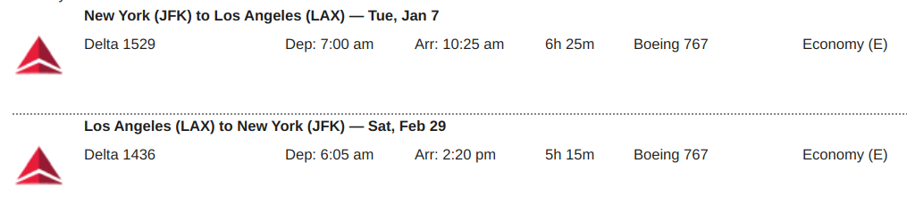 Delta works for me with this itinerary