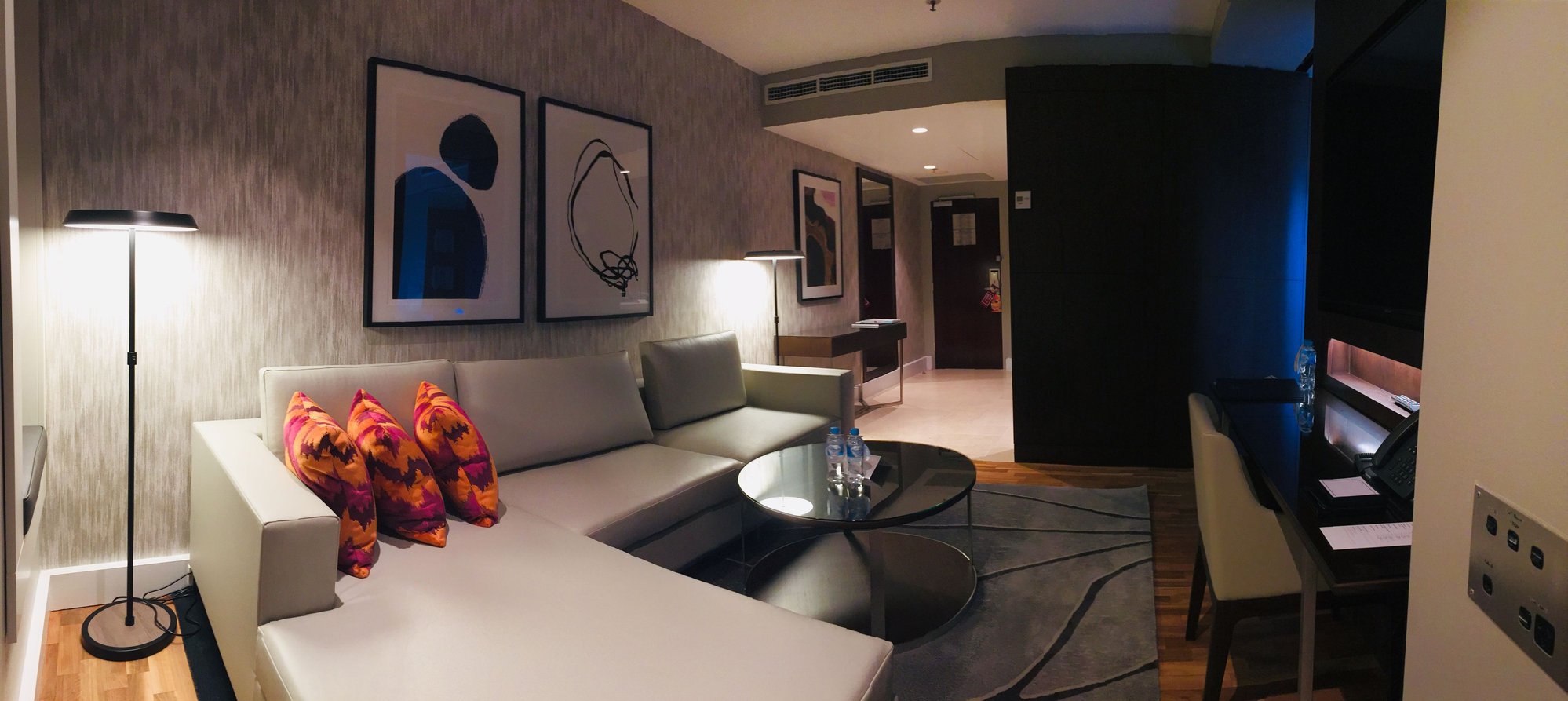 However, if you book the relaxation room, you might be able to request for the renovated room (very limited as renovation is ongoing and they don’t assign these as upgrades) where there’s actually a divider between the room and the lounge area. They’ve also reconfigured the room and have installed a new leather lounge and chaise which is actually big enough for 2 small children to sleep on comfortably but there’s also sufficient room to put an additional rollaway bed. Here’s a pic of the lounge area of the new relaxation room.