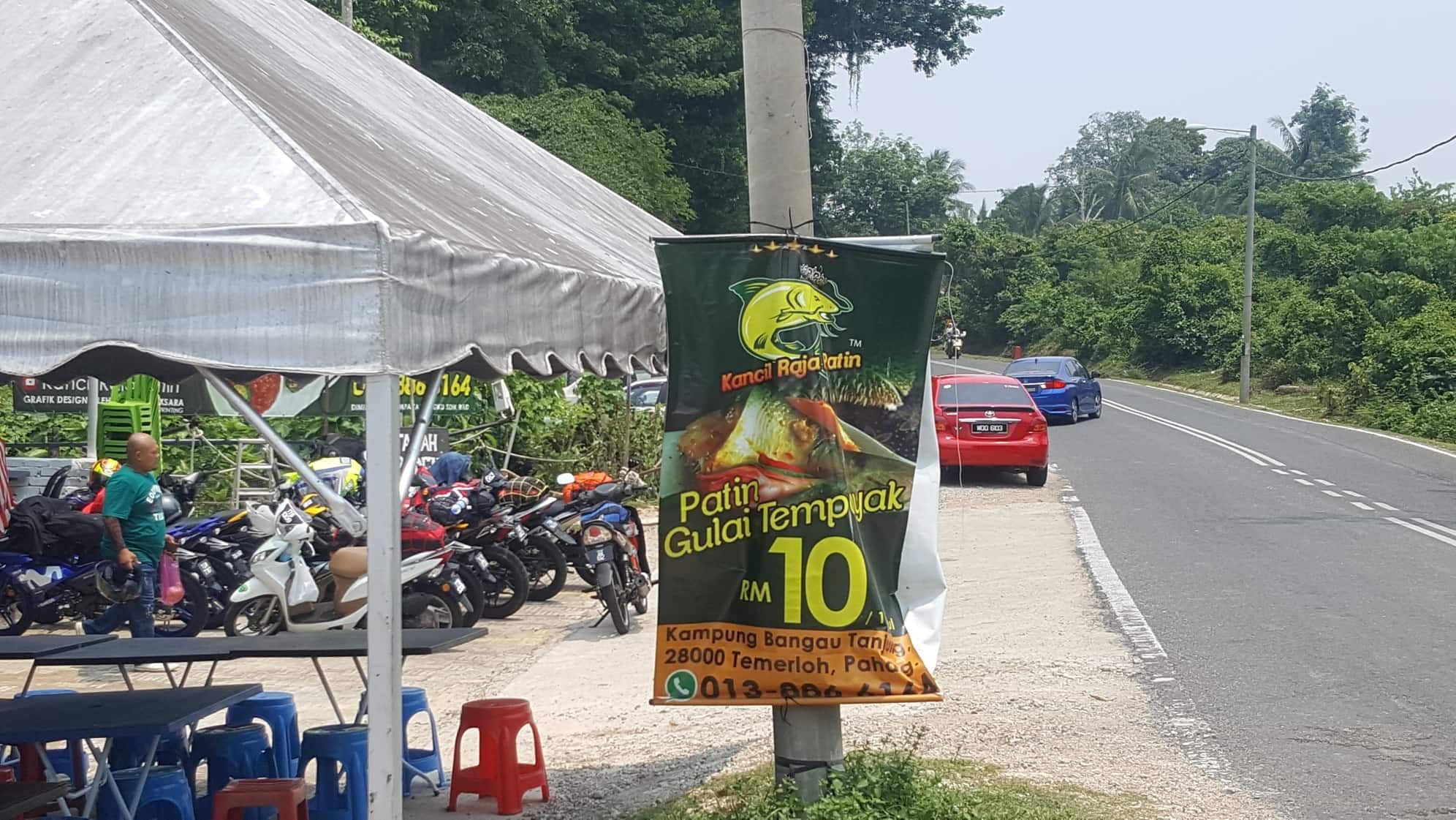 Gulai Patin Tempoyak". There are many stalls and restaurants in Temerloh that serve this dish. 1 of our relatives suggested us to try the Gulai Patin Tempoyak in "Kancil Raja Patin" restaurant which located in a secluded village and next to the "