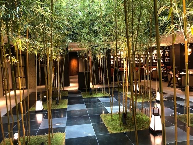 The hotel decor is comfortable and modern, with dark woods contrasted by white and light. A 2-story bamboo grove atrium adds color and light to the hotel interior.