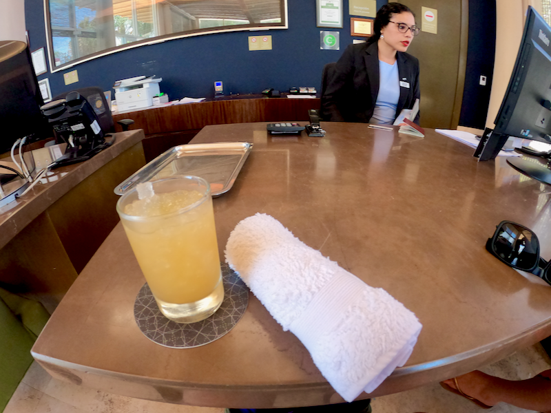 Check-in: Upon check-in a bellhop grabbed our bags from the taxi and we walked into the lobby. Doors are open with no A/C, but a small breeze. We waited about 5 minutes for a front desk agent to become available. We were welcomed with cold hand towels and drink. The front desk agent asked for our passports and acknowledged my platinum status. The bellhop let us know he would wait with our bags in Spanish. My wife had a short conversation with him and as soon as the check-in agent heard her speak Spanish she no longer spoke to me. Instead, she spoke to my wife in Spanish and she had to translate as I'm not fully fluent in Spanish. Even though I spoke over and over to the agent in English she refused to speak to me. This would be a running theme throughout the resort. Three nights there any the only person who didn't try to avoid speaking in English was the concierge.