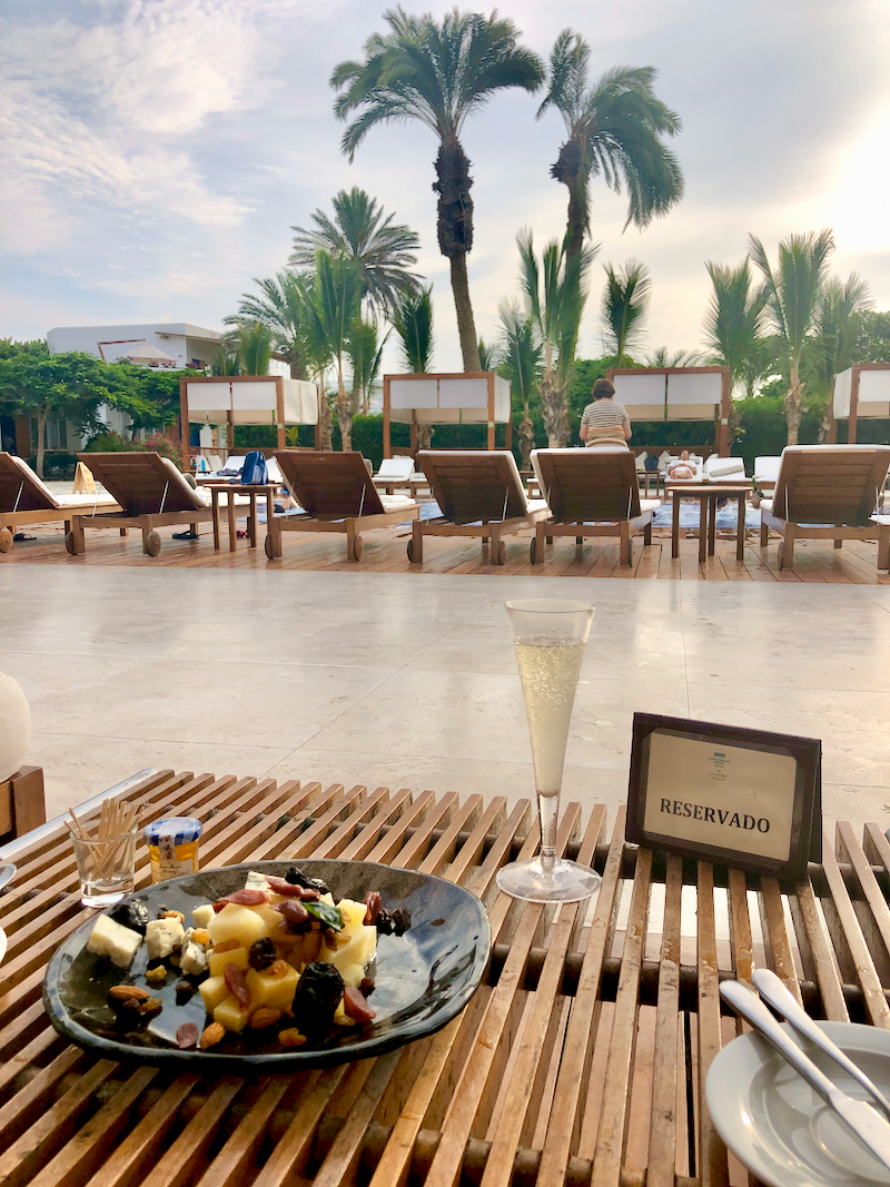 For some reason we were under the impression that the smaller pool was an adults pool, but it was filled with kids throughout the day. It's a heated pool and has a lot of places to sit in the water. Drink prices are what you'd expect at a western resort. I believe they will allow you to bring your own alcohol, but after the first bottle may charge a corkage fee.